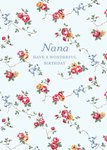 This greeting card design features a light blue background decorated with delicate floral patterns of red, yellow, and pink blossoms, accompanied by soft blue bows and green leaves, creating a charming and elegant aesthetic. The text on the card reads, “Nana Have a Wonderful Birthday.”