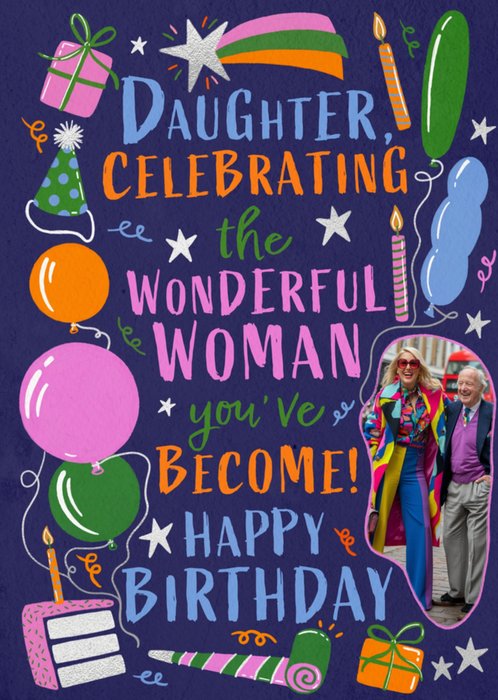 "Daughter, celebrating the wonderful woman you've become! Happy Birthday".