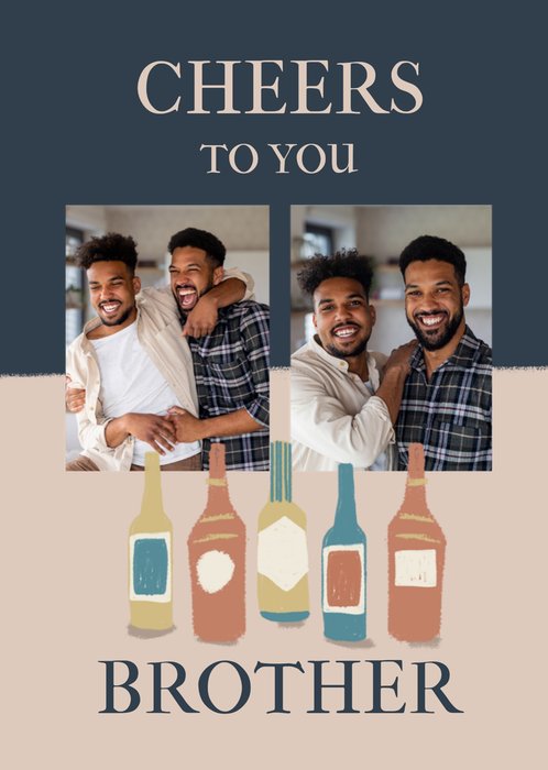 Featuring an illustration of 5 beer bottles lined up with 2 photo upload areas. Text above and below.