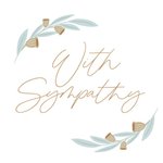 Front of card: With Sympathy Card Features illustrations of leaves on a white background surrounding gold text in the center of the card. Text reads: "With Sympathy".
