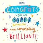Text reads "Natalie congrats you are super amazing and completly brilliant".