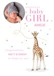 Text reads "Gorgeous baby girl Amelia Congratulations Matt & Sarah so happy for you!".