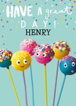 Colourful Cake Pop Characters On A Teal Background Birthday Card