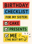 Colourful Typographic Birthday Checklist For Sister Card