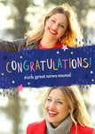 Colourful Typography Surrounded By Stars On A Blue Strip Congratulations Photo Upload Card