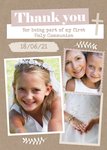 "Thank you" -fixed text, 'For being part of my first Holy Communion' -this can be personalised, "18/06/21" -this date can also be personalised!