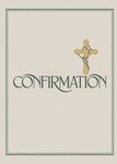 Front of card: Featuring an illustration of an ornate gold cross entwined with green detail above large green serif lettering on a light beige background.