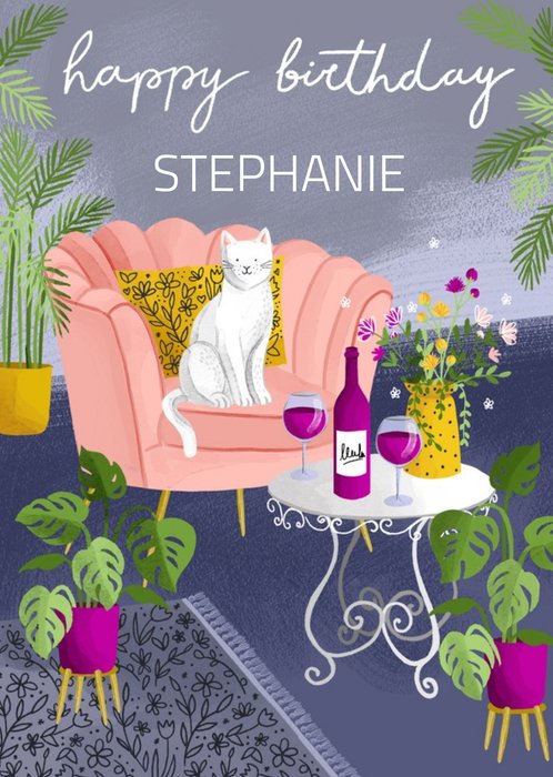 Cute Happy Birthday Cat And Wine Card
