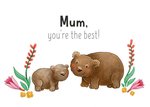 Cute Illustration Of Two Wombats Surrounded By Flowers Mother's Day Card