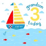 Cute Illustration Sailing Boat Grandson 3 Today Birthday Card