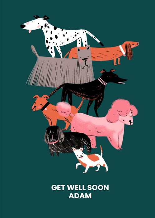 Cute Illustrations of Dog breeds Get Well Soon Card