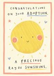 Featuring a cute illustrated yellow sun with a smiling face and rosy cheeks, surrounded by tiny stars and hearts, on a soft cream coloured background.