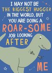 Text reads: "I may not be the biggest hugger in the world, but you are doing a roar-some job looking after me".