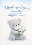 Cute Watercolour Teddy Bear With Bouquet Sympathy Card