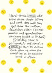 Featuring a handwritten message celebrating women, surrounded by yellow smiley faces on a cream background.