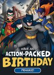 "Have an action-packed birthday Frankie." The name "Frankie" is editable.