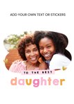 A modern, minimalist design featuring a single large photo upload area, with fixed text below, on a white background. Fixed text reads: "To the best Daughter." Above the photo upload there is fully editable text, allowing you to create a truly personalised card and add stickers.