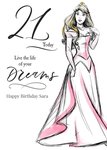 with a typographical, non editable caption that reads 21 Today. Live The Life Of Your Dreams. Followed by the editable Happy Birthday Recipients Name. The design sits on a white background.