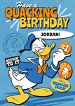 "Have a quacking birthday Jordan!". 'Jordan!' can be personalised!