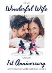 Mickey And Minnie Mouse Wonderful Wife 1st Anniversary Photo Upload Card