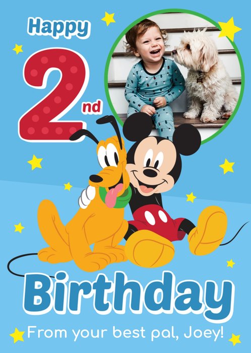 Disney Mickey Mouse Happy 2nd Birthday From Your Best Pal Photo Upload Card
