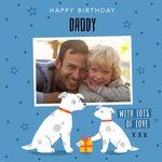 Features an illustrations of 2 dogs and a present and a photo upload area.
