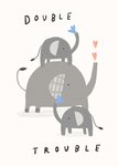 A fun, modern design featuring a cute illustration of a large grey elephant with two small elephants, surrounded by peach hearts and hand-drawn text, on a soft cream background.