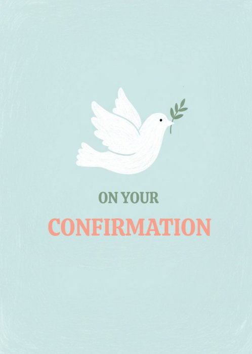 Featuring a small illustration of a white dove carrying an olive branch on a pale blue background, with bold green & red text below.
