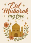 Eid Mubarak My Love Illustrated Mosque And Flowers Card