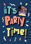 Electric Letters It's Party Time Bold Typography Photo Upload Birthday Card