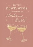 Featuring two illustrated champagne coupe glasses clinking together with sparkling accents on a blush pink coloured background.