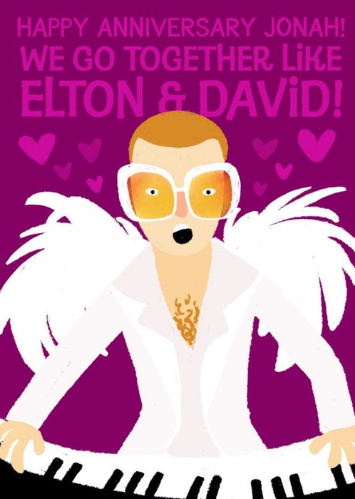 Elton John funny anniversary card - we go together like Elton and David!