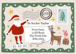 Front of card: "To Archie Taylor. From Santa, 25 Elf Road, The North Pole, XM55HQ."