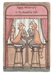 Front of card: Featuring an ink and watercolour illustration of red pandas enjoying a drink in a cosy bar. Text reads: "Happy Anniversary to my beautiful wife". All text can be personalised!