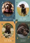 Front of card: Father's Day Photo Upload Card Four circular photo frames with hearts. Text reads: "World's best dog dad love from Coco x". All text can be personalised!