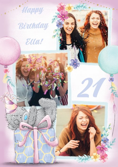 Featuring A Two Tone Design With four Photo Frames 21st Birthday Photo Upload Card