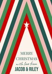 A bold Christmas card featuring striking, repeating triangular stiped pattern to represent a Christmas tree.