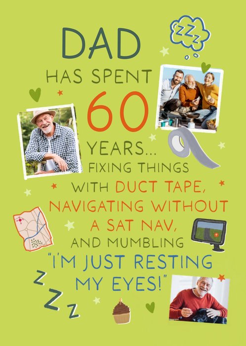 "Dad has spent 60 years... fixing things with duct tape, navigating without a sat nav, and mumbling 'I'm just resting my eyes!'".