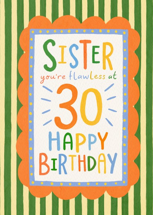 A bright and bold colourful design featuring different layers, one with green & yellow stripes, one with an orange scalloped border and one with playful typography with a blue & yellow spotty edge.