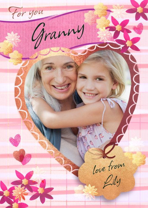 • Birthday Card - Grandma - Floral Photo Upload Card