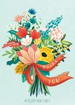 Flower bouquet illustration - thank you. Editable text below image. Postcard