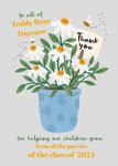 Features an illustration of a flowers in a pot. "To all at Teddy Bear Daycar Thank you for helping our children grow frrom all of the parents of the class of 2023".