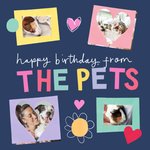 Front of card: From The Pets Photo Upload Birthday Card Four colourful photo frames with handwritten typography. Text reads: "Happy birthday from the pets".
