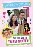 Front of card: Featuring a photograph of Monica and chandler getting married. Text reads: "Morgan and Cameron the one where you get married!". 'Morgan and Cameron' can be personalised!