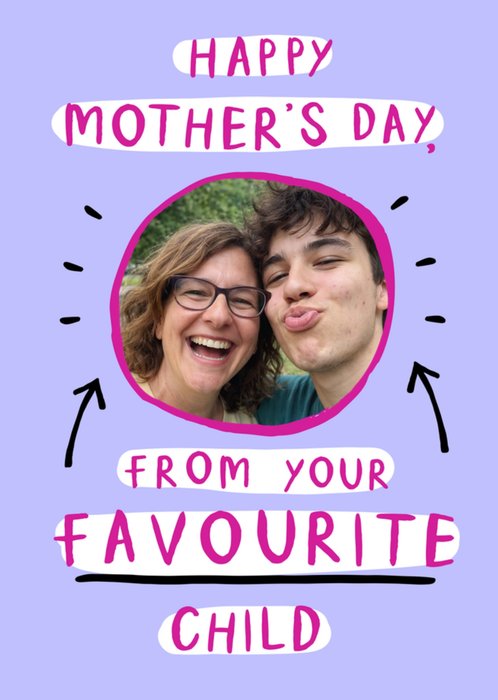 A playful design featuring a circular photo frame with hand-lettered pink typography, doodle arrows and an underline on a lilac background.