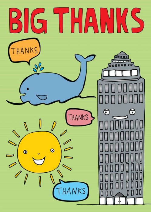 Fun Illustration Of A Whale The Sun And A Skyscraper Big Thanks Card