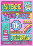 Fun Illustration Typographic Happy Birthday Niece You Are 16 Today Birthday Card