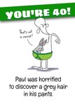Funny 40th Birthday Card - You're 40! Paul was horrified to discover a grey hair in his pants.