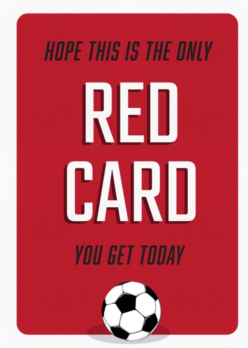 Featuring bold white and black typography reading “Red Card” in the centre of a red panel, with smaller matching text above and below and a black and white football illustration at the bottom, all on a white background.
