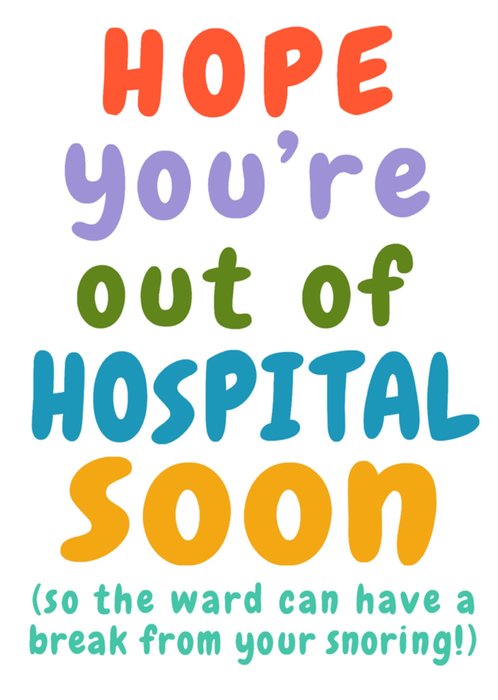"Hope you're out of hospital soon (so the ward can have a break from your snoring!)."